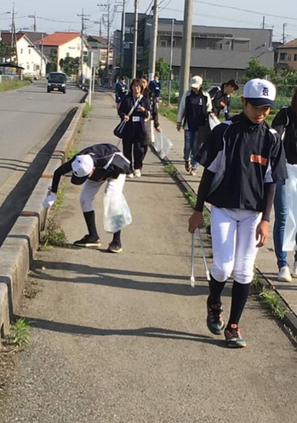 春日部ボーイズでは、月に一度、地域ボランティア活動として、近隣の清掃活動を行っております。